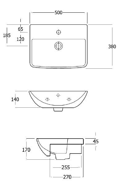 SanCeram Langley 500mm Semi-recessed Basin with central tap hole, for installation into a semi-recessed vanity unit.