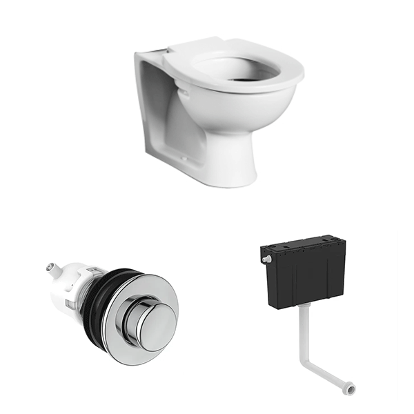 Armitage Shanks Contour 21 Schools 355 WC & Palm Push Flush Pack includes the Armitage Shanks Contour 21 Schools 355 Toilet Pan is the ideal height for young children, to encourage and support independent use along with the Conceala 3 Single Flush Pneumatic Concealed Cistern and a single flush palm push button.